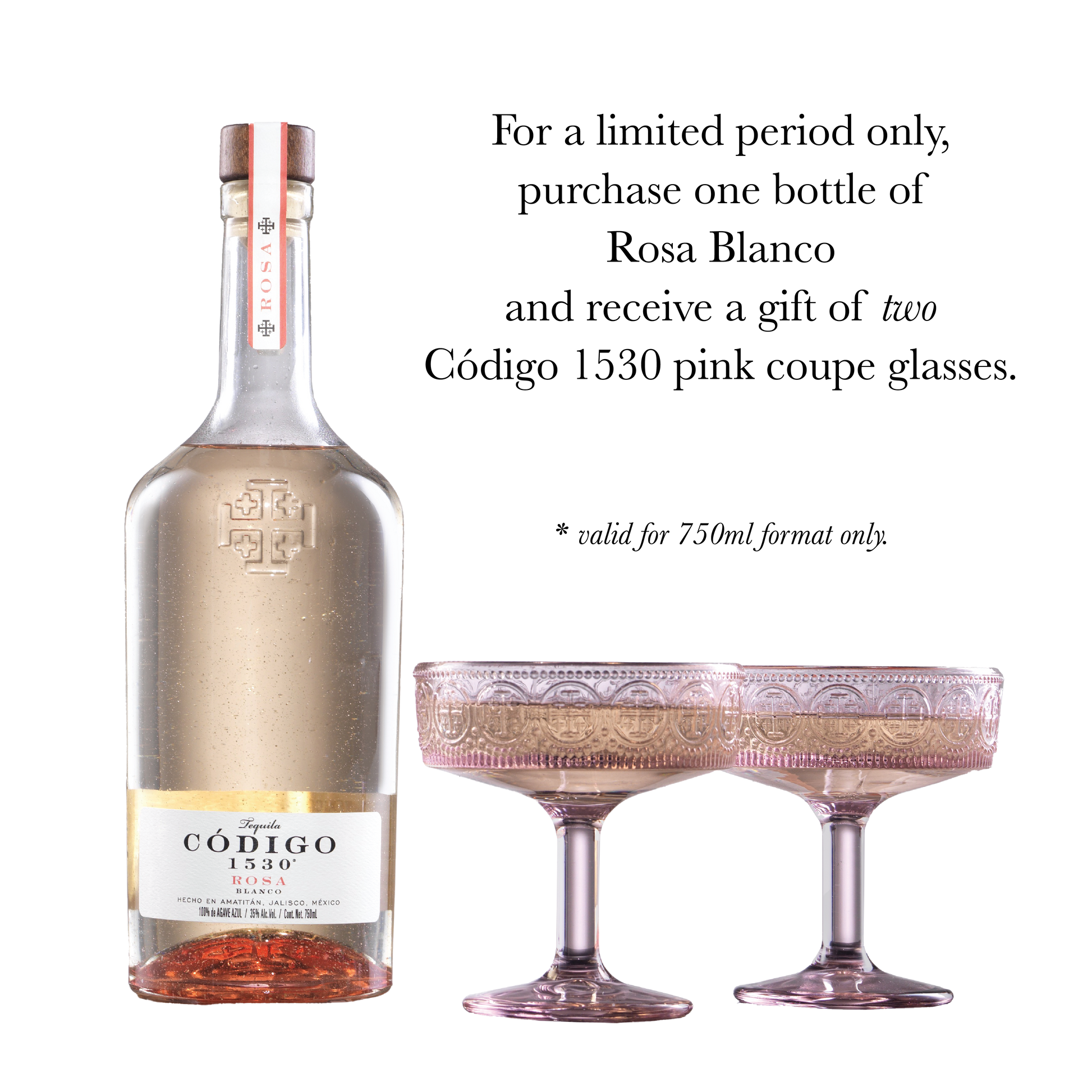 Código 1530 Rosa Blanco begins with the purity of our Blanco, then is rested for 1 month in uncharred Napa Cabernet French White Oak barrels. The result is a refined spirit with a natural colour as beautiful as its taste.